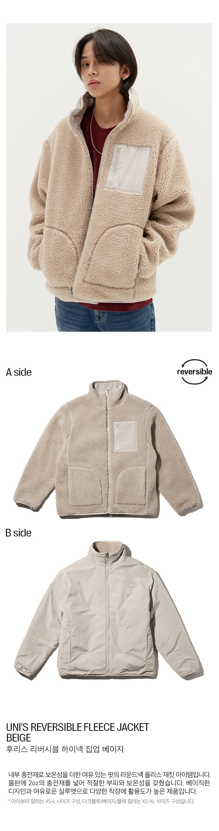 (롯데백화점)남여공용 후리스 리버시블하이넥 집업 (PWTO4HZL17U)