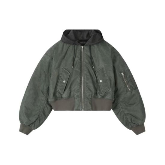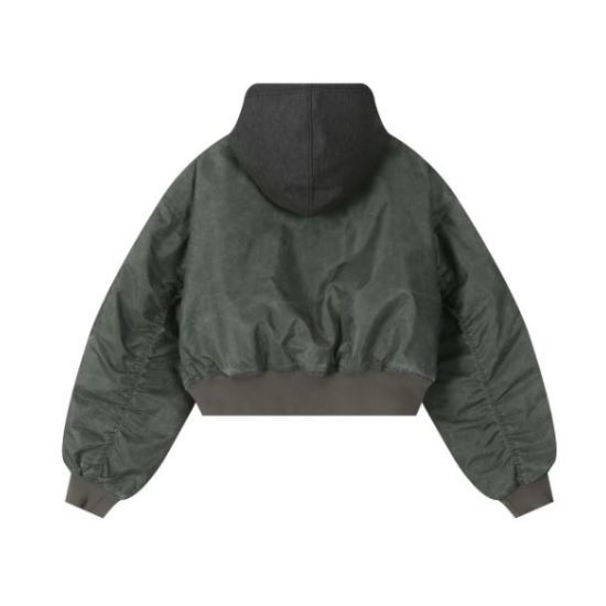 * 나일론 피그먼트 소재로 자연스러운 텍스쳐와 컬러감을 살린 MA-1 스타일로 네오프렌 소재의 후드 탈부착 패딩 점퍼