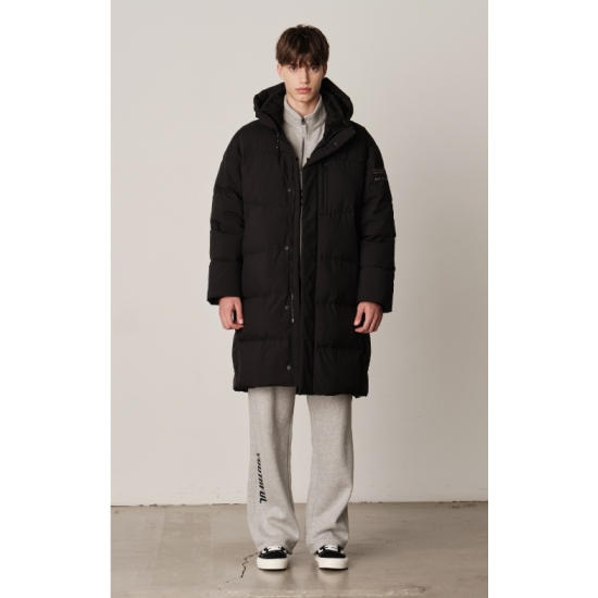 편안하게 떨어지는 핏감의 롱 기장 다운 점퍼 입니다.다운 충전재를 사용하여 보온에 용이 합니다