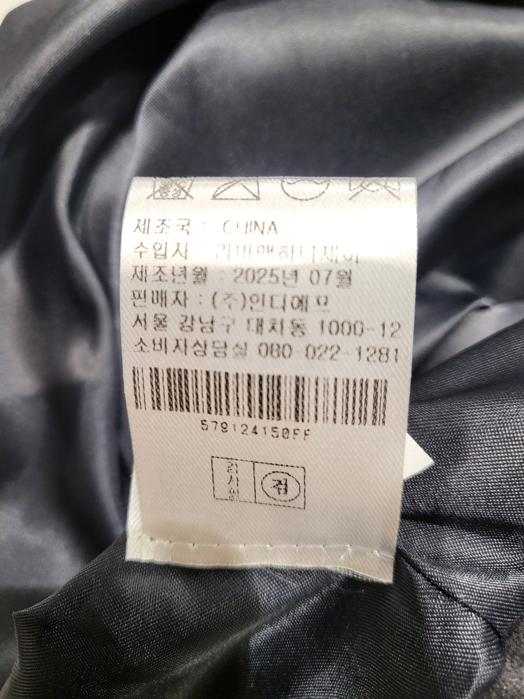 | 세탁방법 및 취급시 주의사항 | 상품케어라벨표기 |