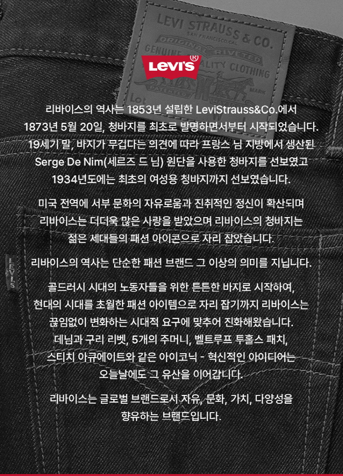 | A/S 책임자와 전화번호 | 서울시 강남구 도산대로 414. 한성빌딩 11층 리바이스트라우스코리아 소비자상담실 1660-0501 |