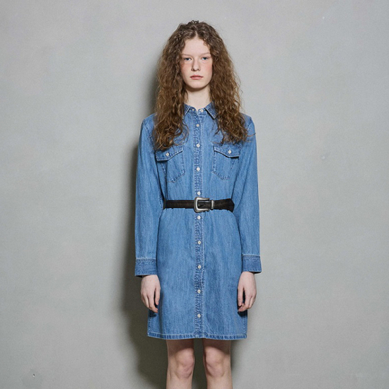 (롯데백화점)여성 투포켓 셔츠형 워싱 데님 원피스 B255DO990P