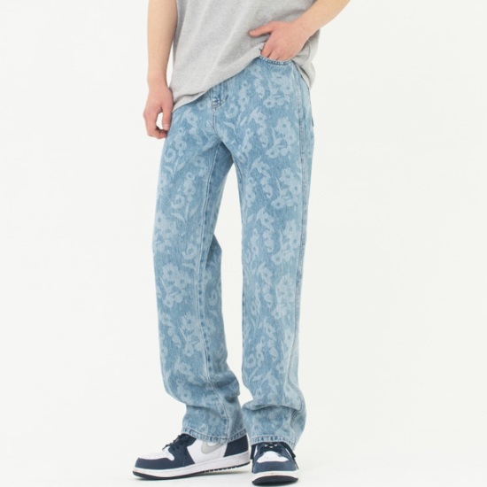 상품명 남성 랏츠 W13 스트레이트 프린팅 중청 데님 팬츠