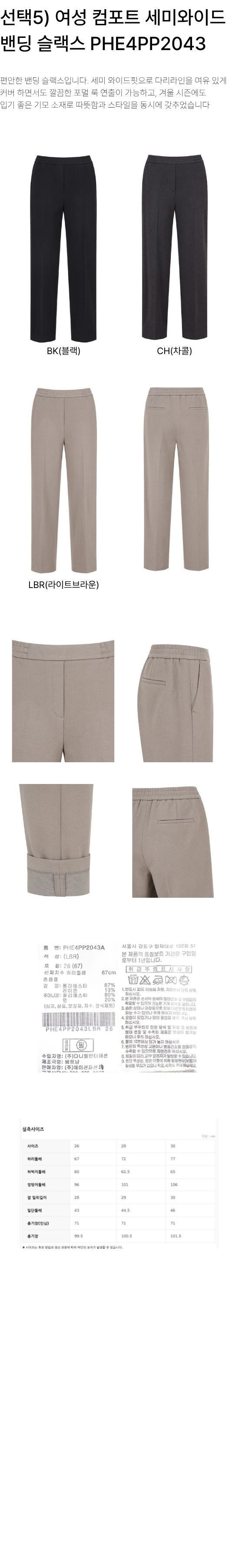 (신세계타임스퀘어점리빙관)남여 인기 밴딩 슬랙스 5종 택1 PHF1PP1036PHF1PP1030PHF1PP1033PHE4PP1...