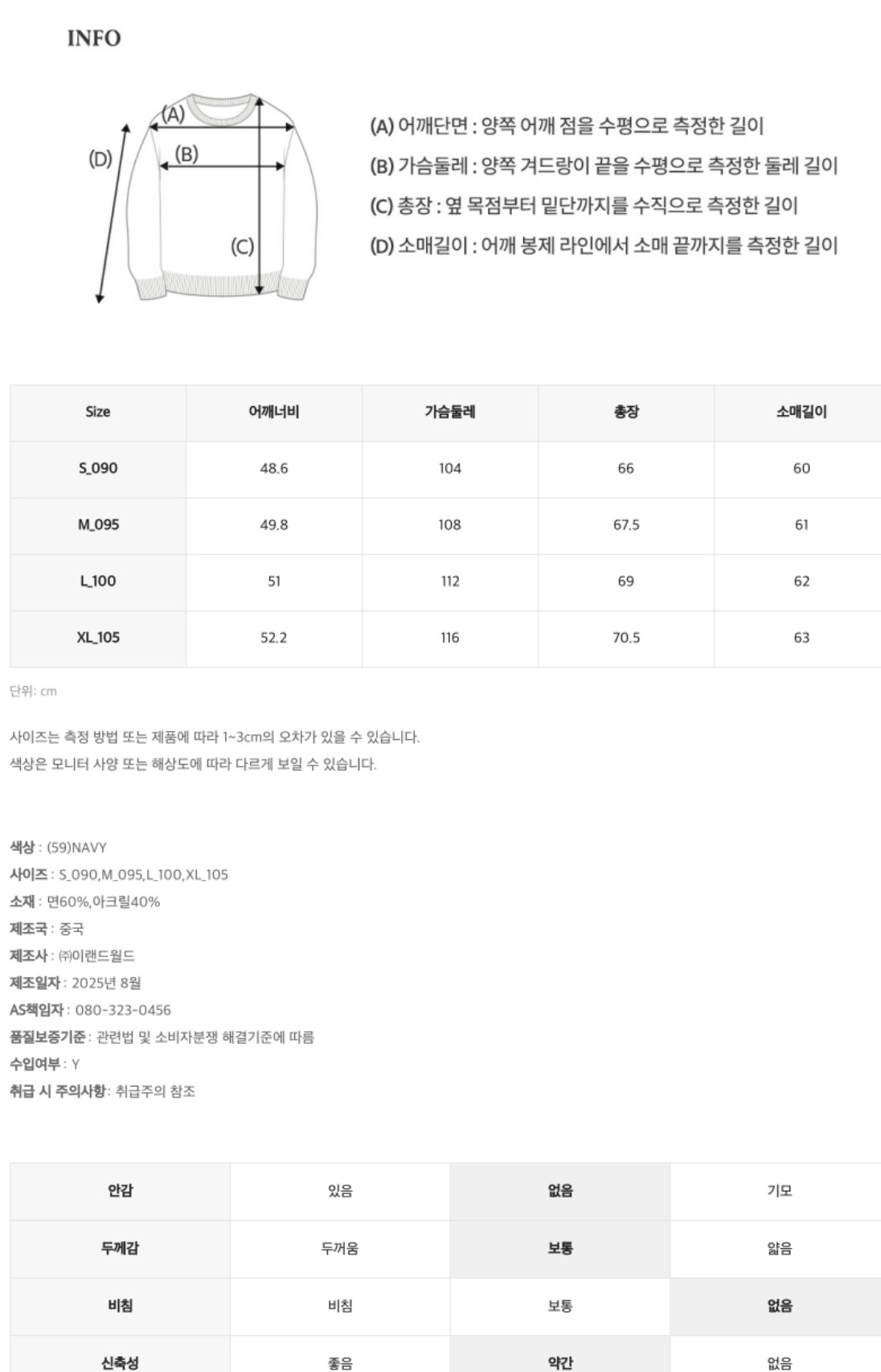 세탁방법 및 취급시 주의사항 상품상세 참조