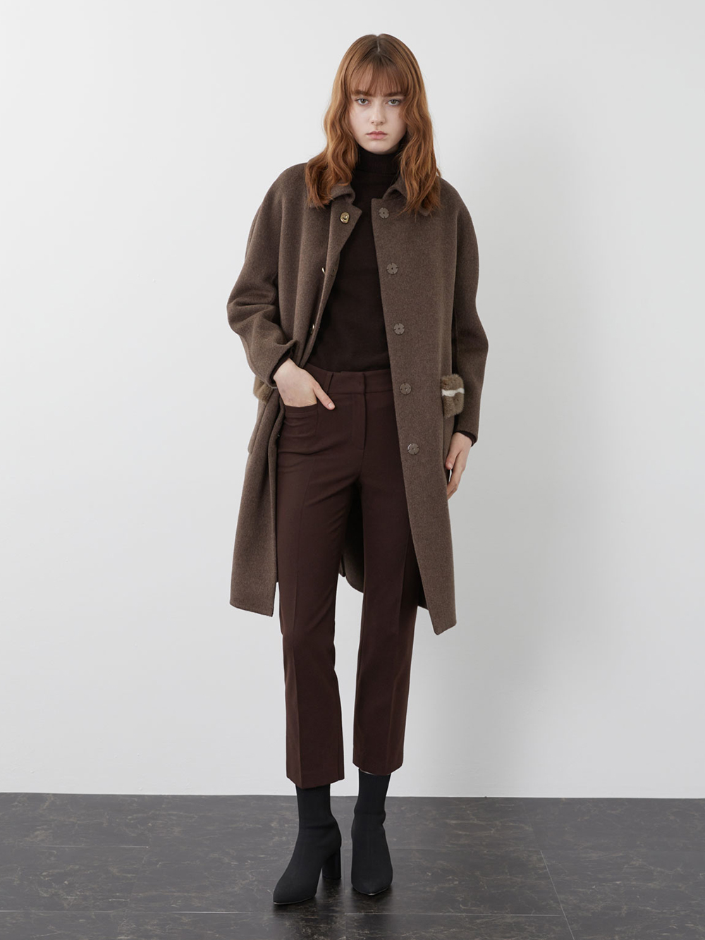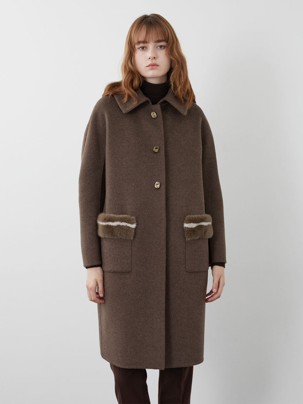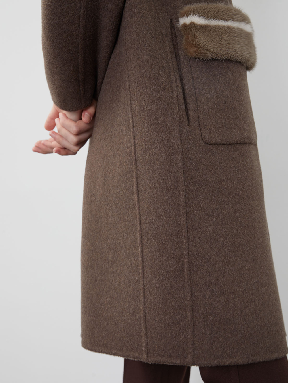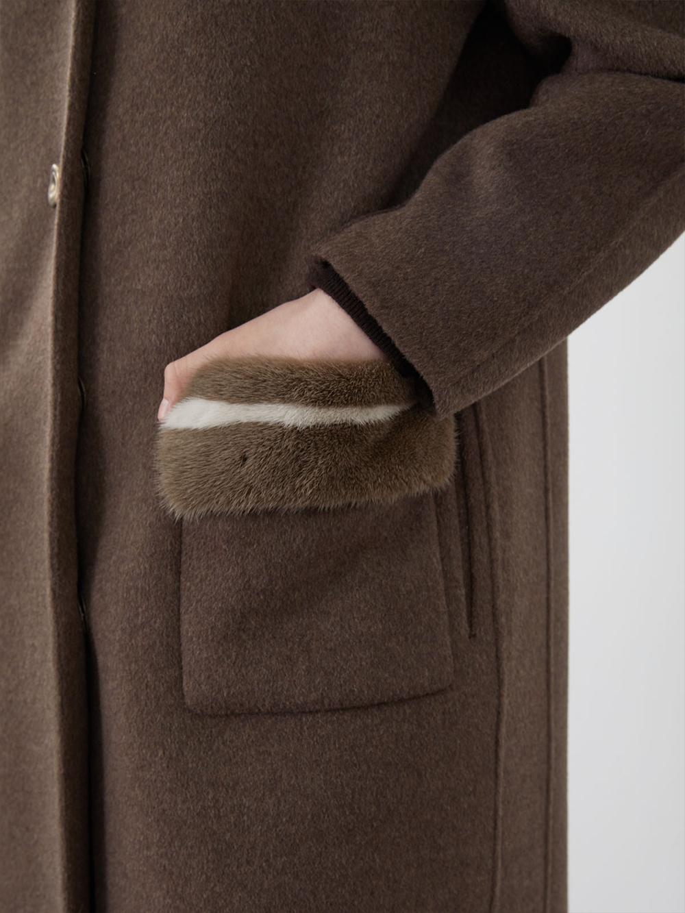(현대Hmall)올리비아로렌 포켓 밍크퍼 배색 코트_VOPEA3WA336
