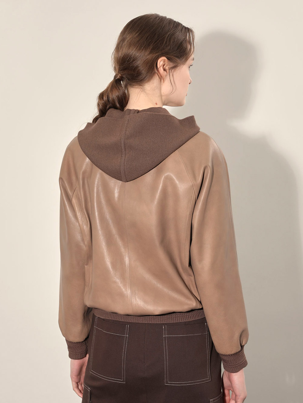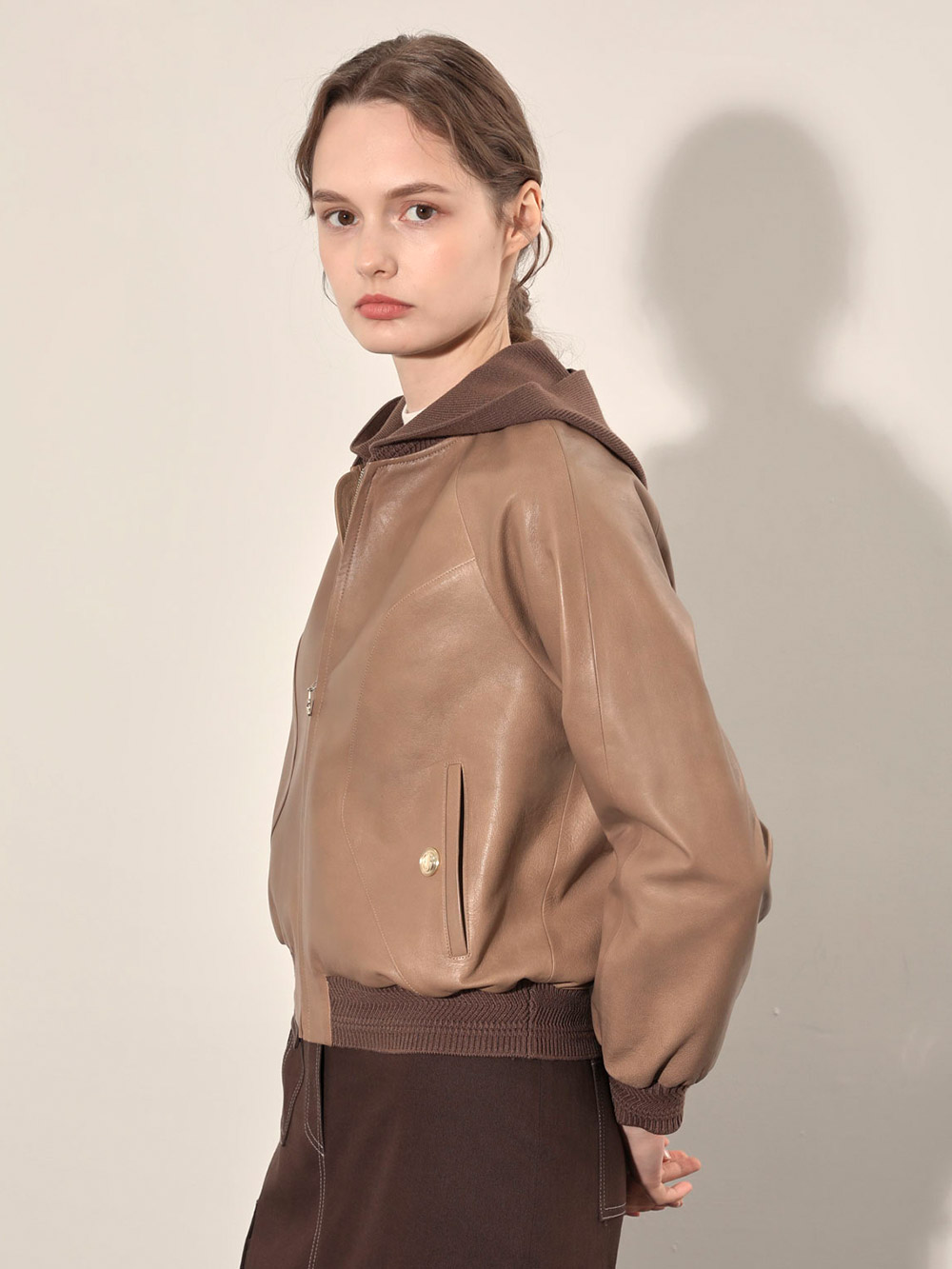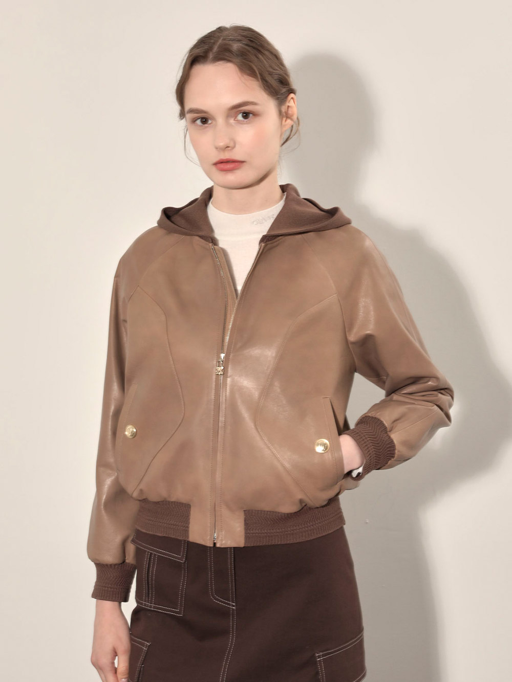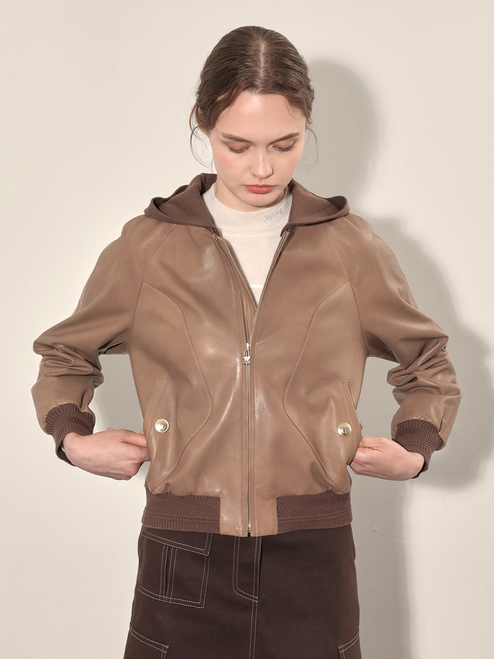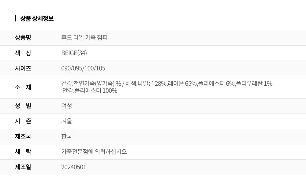 (현대Hmall)올리비아로렌 후드 리얼 가죽 점퍼_VOBJN4F8151