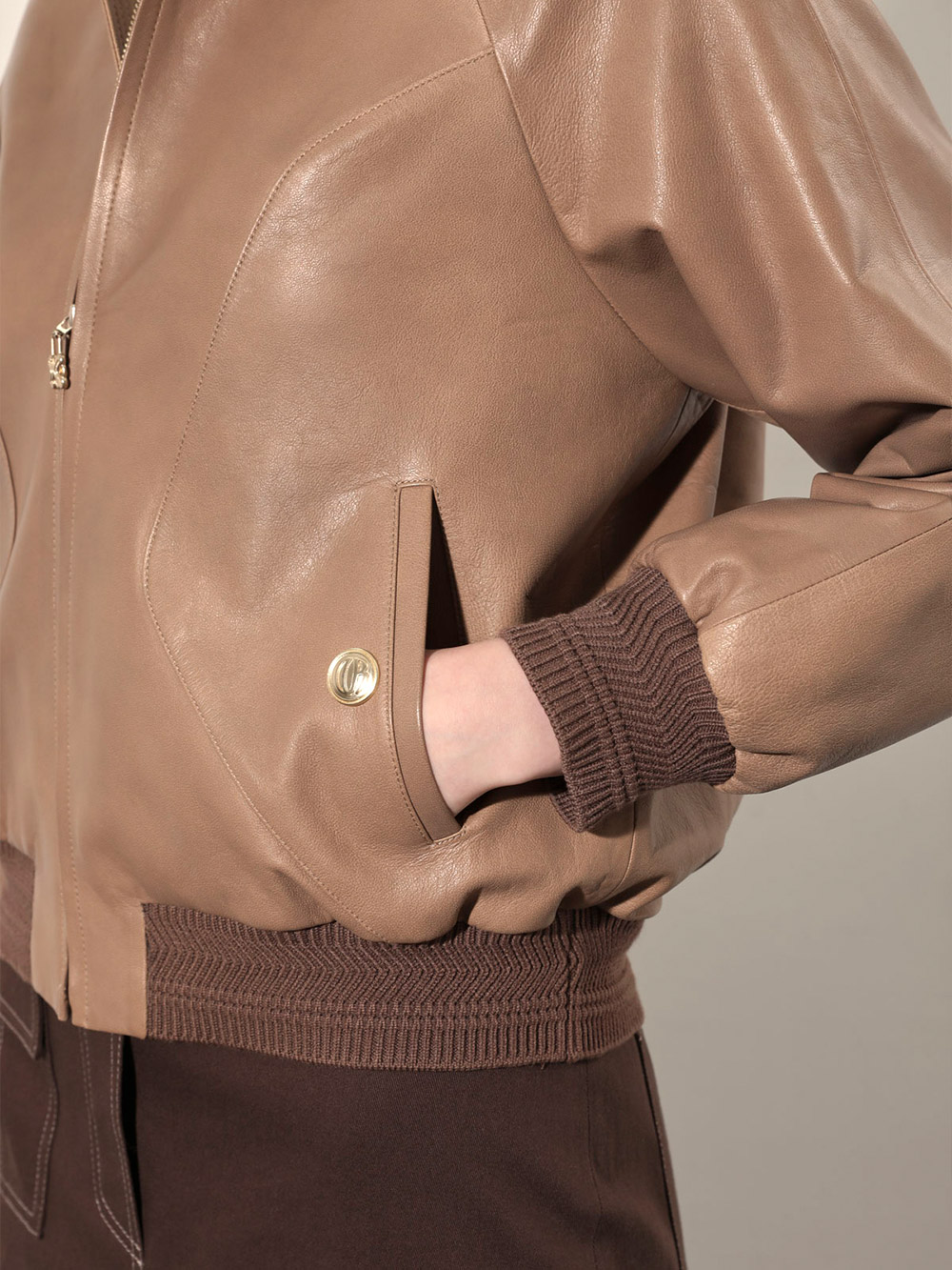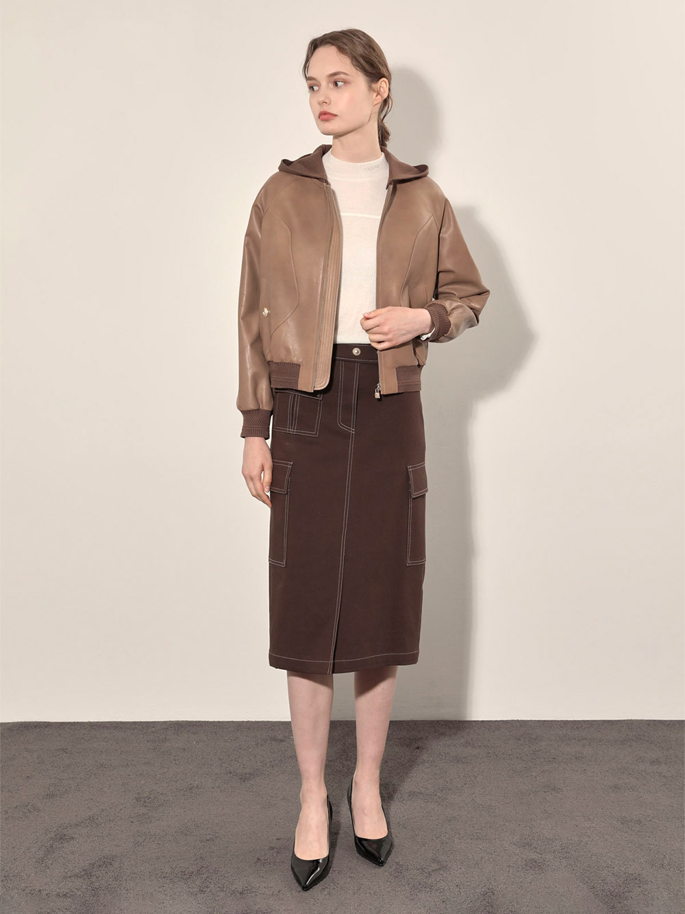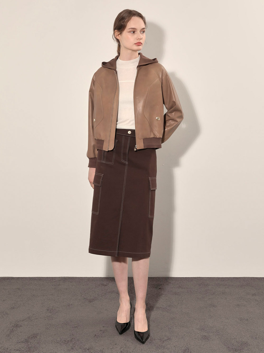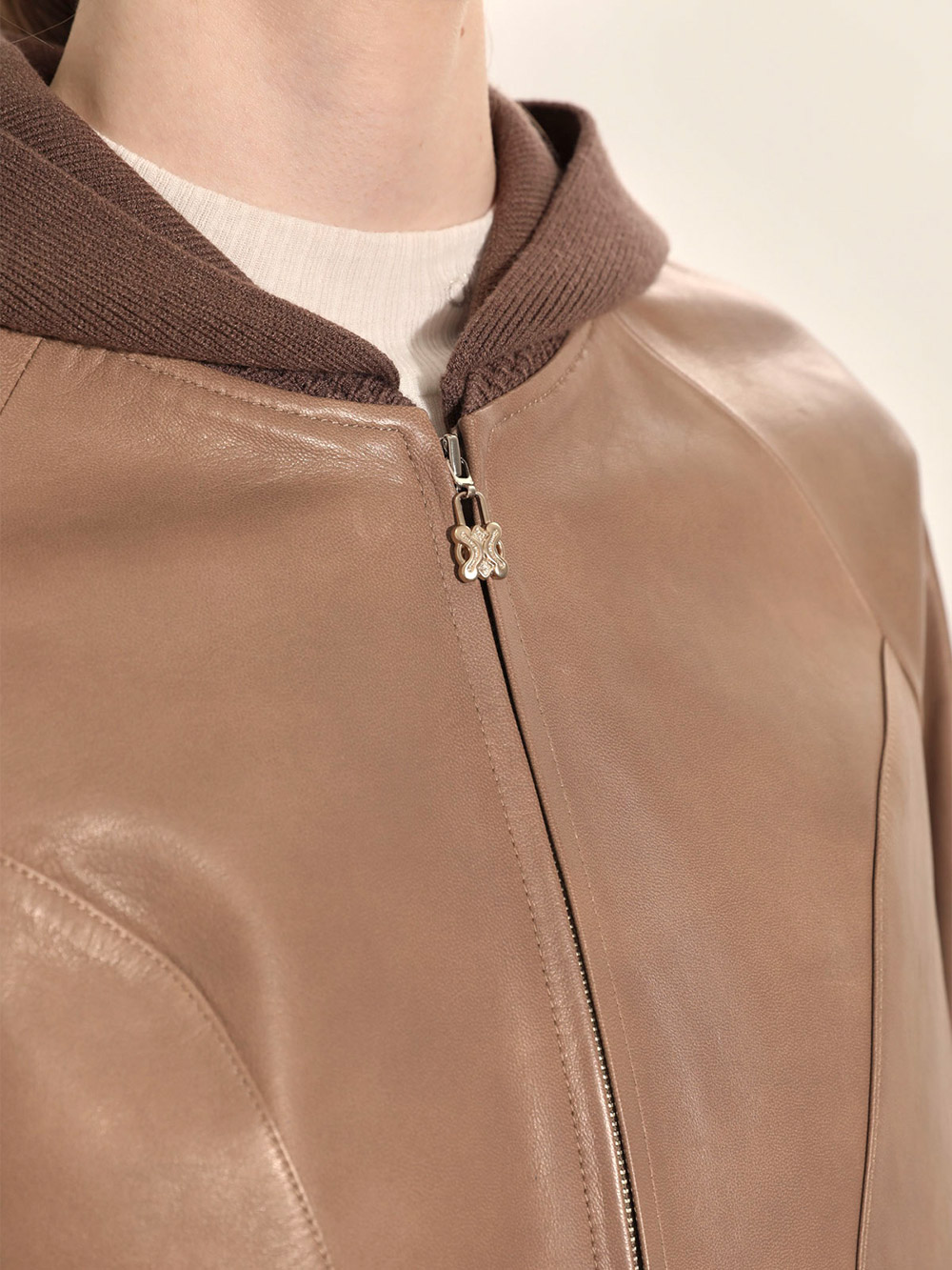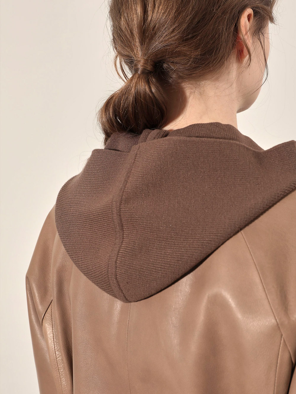 (현대Hmall)올리비아로렌 후드 리얼 가죽 점퍼_VOBJN4F8151