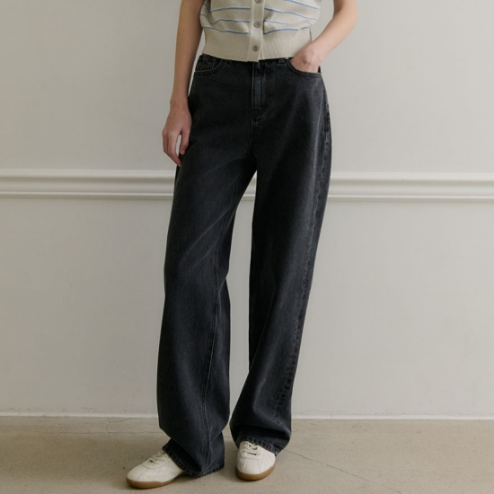 (롯데백화점)여성 세미 와이드 데님팬츠 M33 스톤 블랙(PJTI5MSM335)