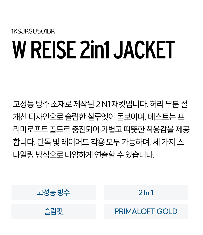 여성 레이즈 2in1 재킷 1KSJKSU501_BK