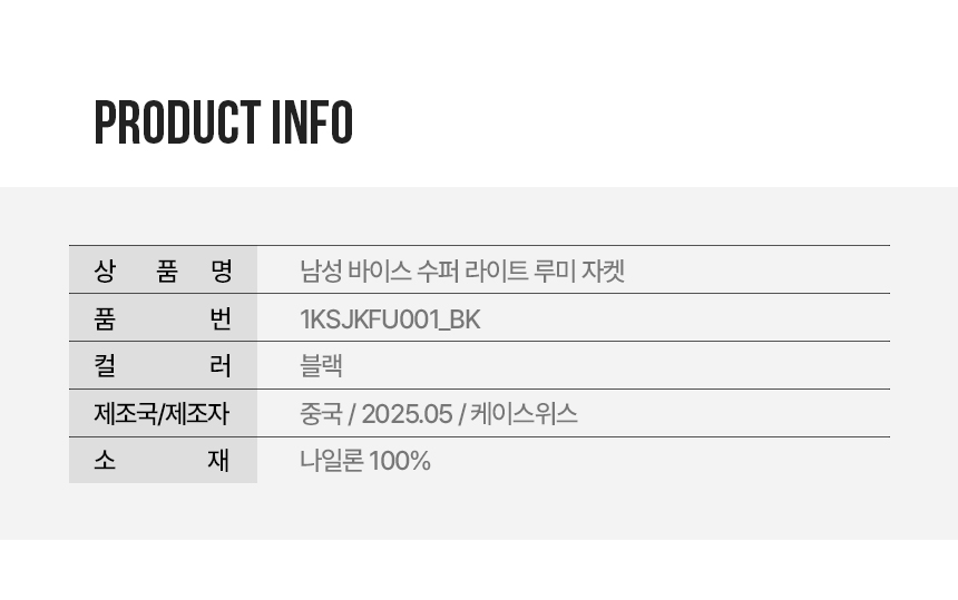 남성 바이스 수퍼 라이트 루미 자켓 1KSJKFU001_BK