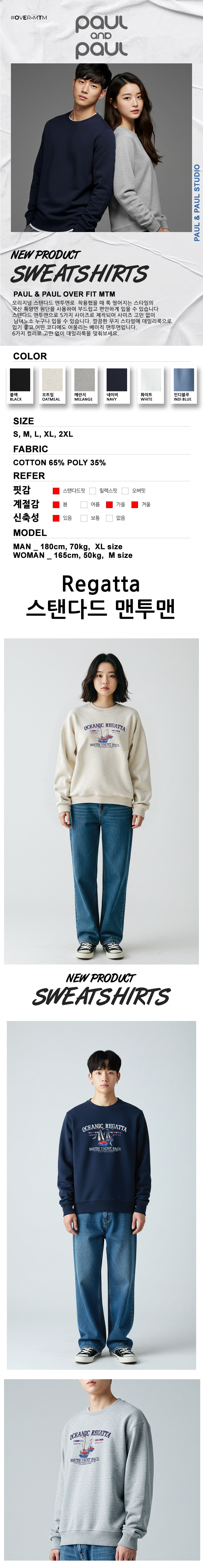 Regatta 스탠다드 남여공용 맨투맨 6컬러