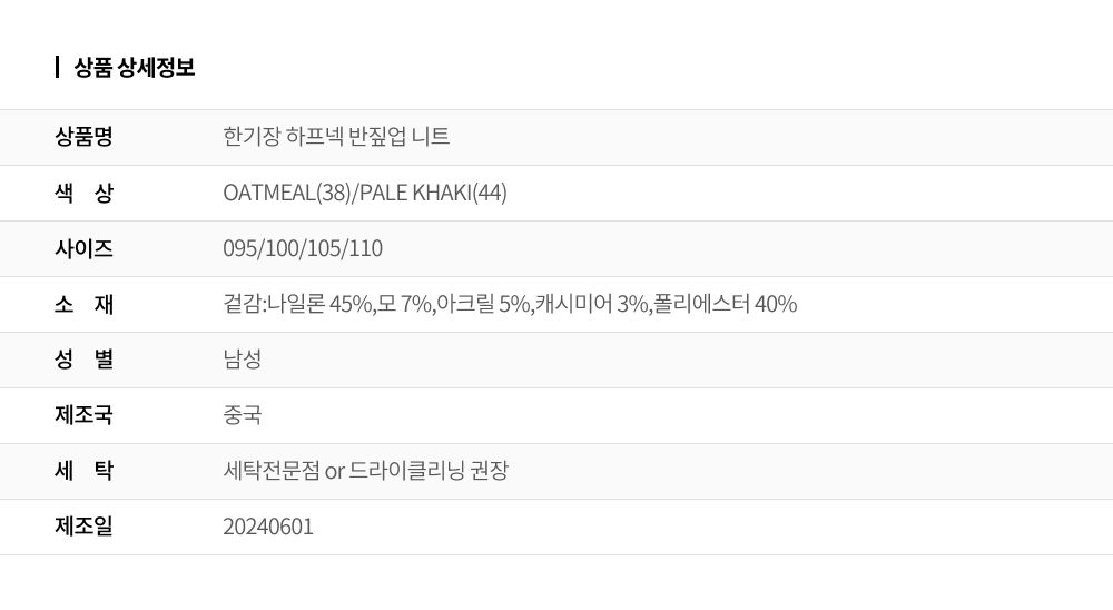 (현대Hmall)INDIAN 한기장 하프넥 반짚업 니트_MITBH4W9341