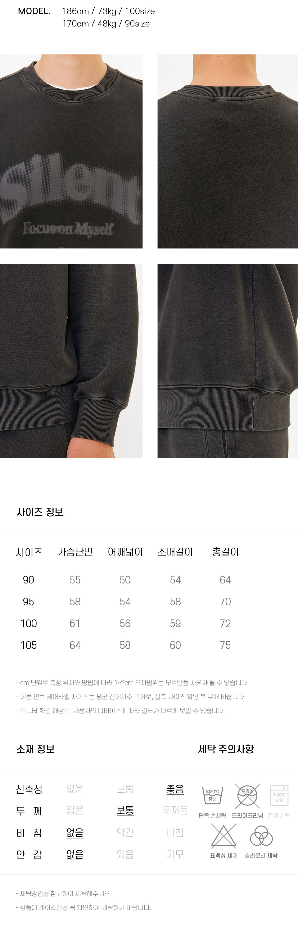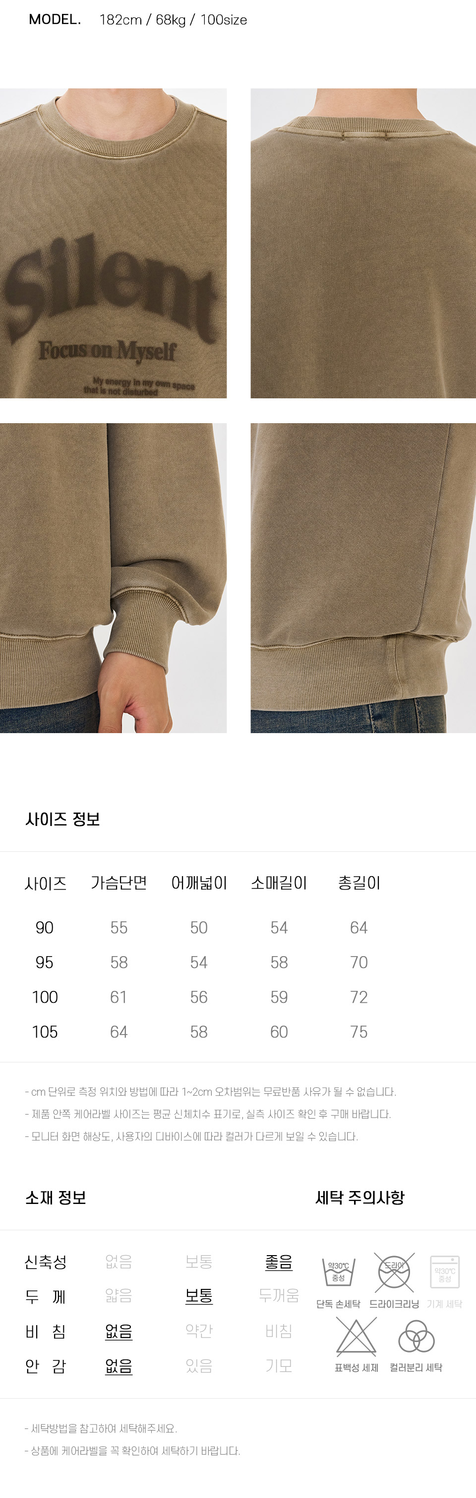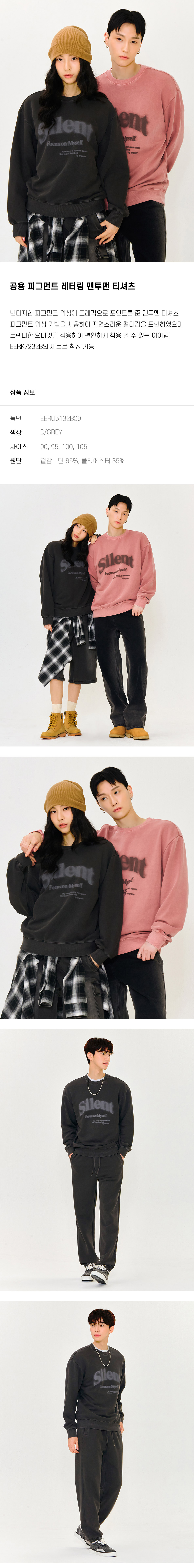 (현대Hmall)체이스컬트 (UNISEX) SILENT 피그먼트 레터링 맨투맨 T-SHIRT/3Color