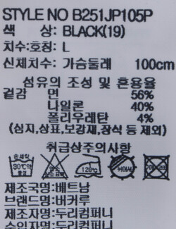 | - 소재 | [겉감]면56% 나일론40% 폴리우레탄4% |