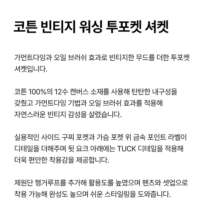 | - 상품명 | 남자코튼 빈티지 워싱 투포켓 셔켓(B251SH341P) |