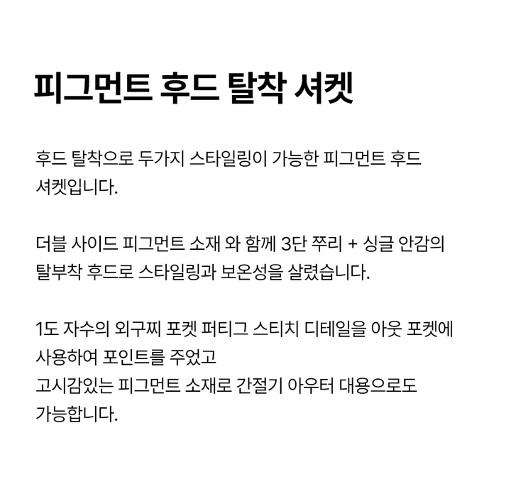 | - 상품명 | 남자피그먼트 후드 탈착 셔켓(B251SH340P) |