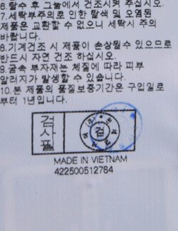 | - | 되도록 드라이 크리닝 하십시오. (데님, 언더웨어 상품은 물세탁시 중성세제를 사용, 표백성분 세제 사용금지), 손세탁시 뒤집어 세탁 하십시오. (데님 상품은 연한 색상과 함께 세탁할 경우 이염 될수 있음), 세탁시 탈색 될수 있으며 착장시 가방류나 밝은 색상의 의류에 이염 될 수 있으니 주의 하십시오. |