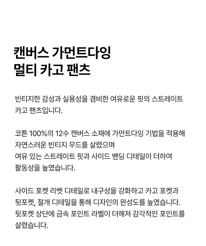 | - 상품명 | 남자캔버스 가먼트다잉 멀티 카고 팬츠(B251PT260P) |