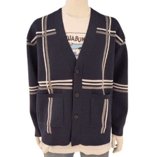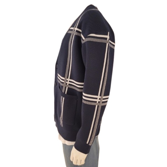 (롯데백화점)남성 체크 와이넥 가디건 라이트블루 FNASW143M066