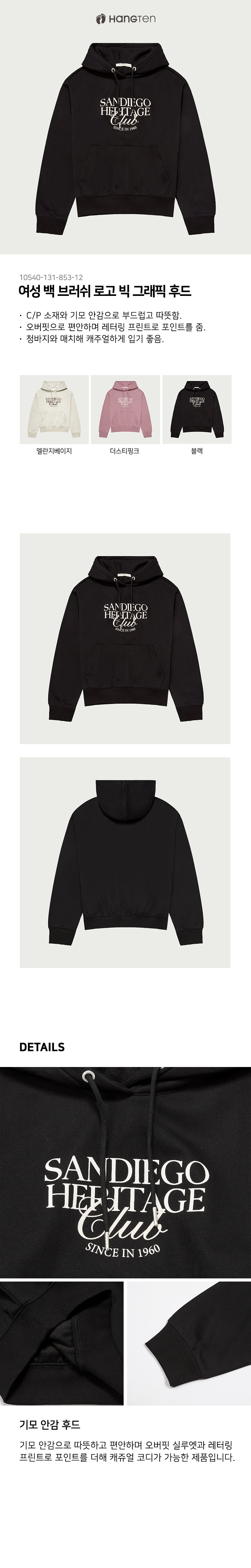 [행텐] 여성 백 브러쉬 로고 빅 그래픽 후드티셔츠_100(10540-131-853-12)