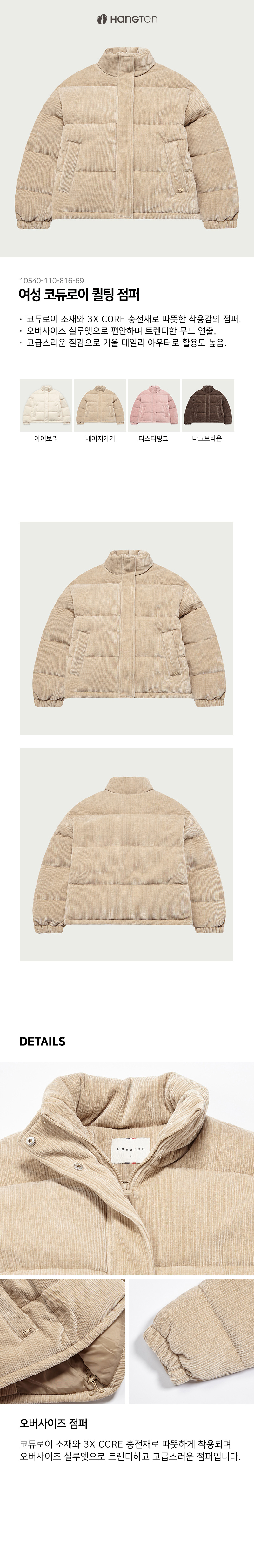 [행텐] 여성 코듀로이 퀼팅 점퍼_120(10540-110-816-69)