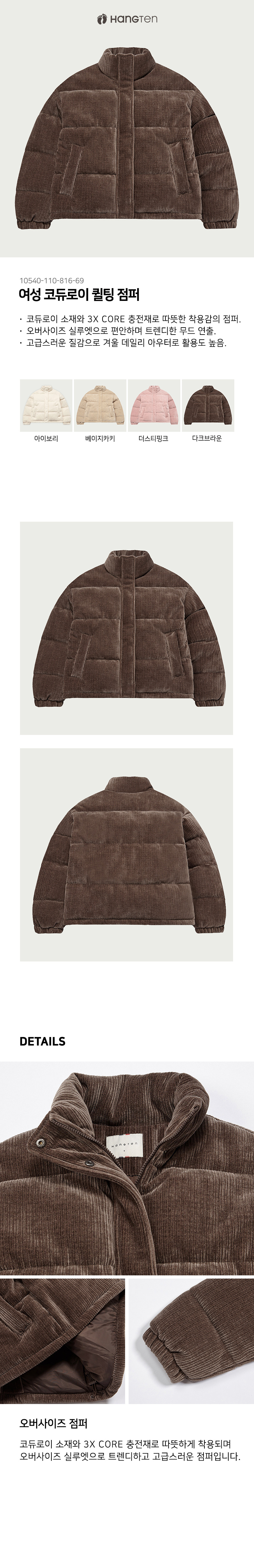 [행텐] 여성 코듀로이 퀼팅 점퍼_147(10540-110-816-69)