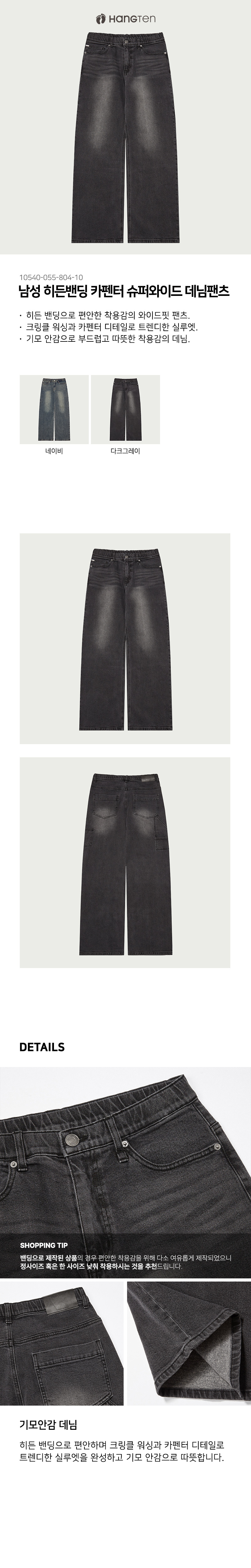 (현대Hmall)행텐 남성 히든밴딩 카펜터 슈퍼와이드 데님팬츠_057(10540-055-804-10)