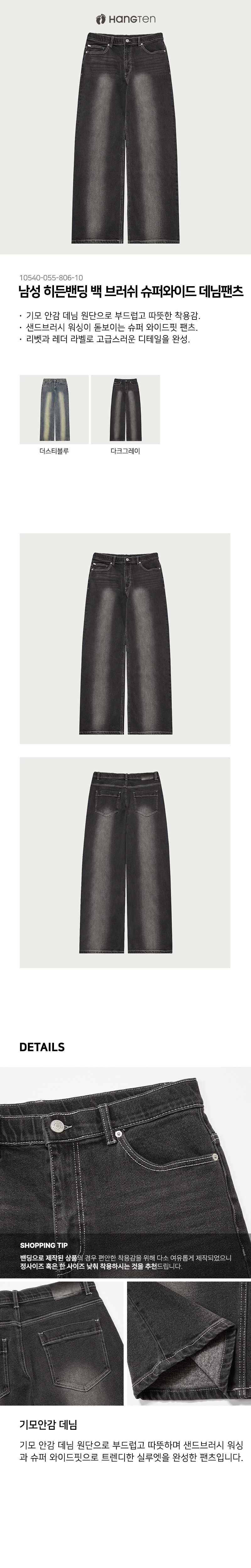 [행텐] 남성 히든밴딩 백 브러쉬 슈퍼와이드 데님팬츠_165(10540-055-806-10)