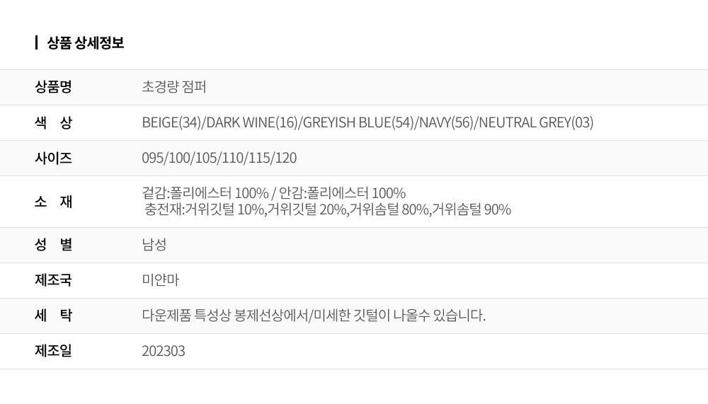 다운제품 특성상 봉제선상에서/미세한 깃털이 나올수 있습니다.