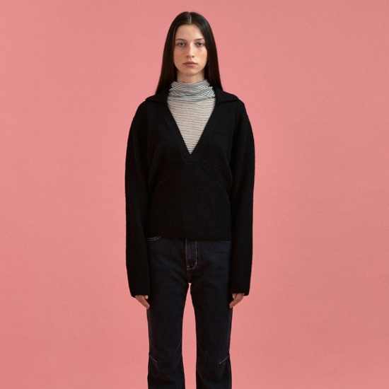 상품명 여성 윈터 브이넥 카라 레이어드 니트