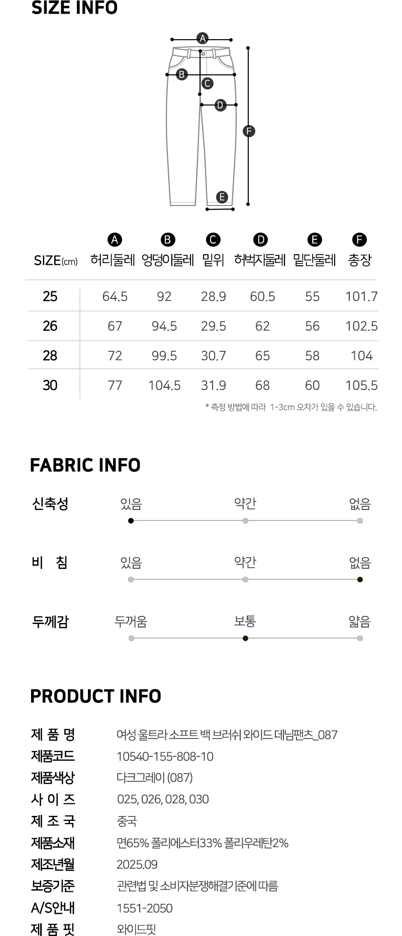 [행텐] 여성 울트라 소프트 백 브러쉬 와이드 데님팬츠_087(10540-155-808-10)