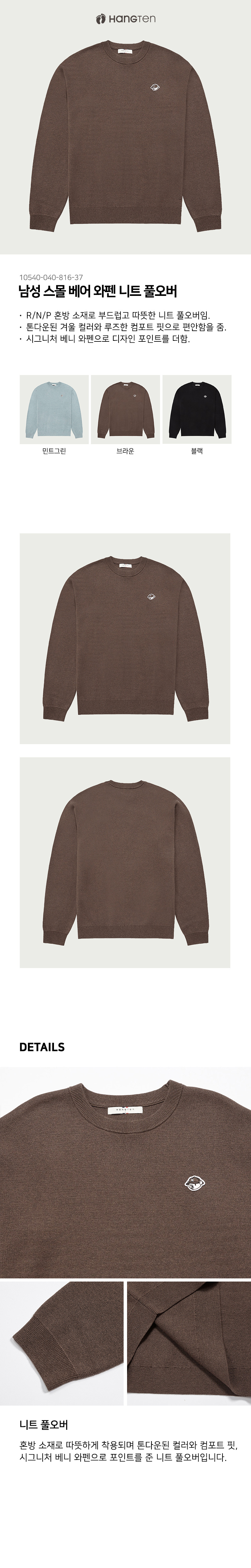 [행텐] 남성 스몰 베어 와펜 니트 풀오버_183(10540-040-816-37)