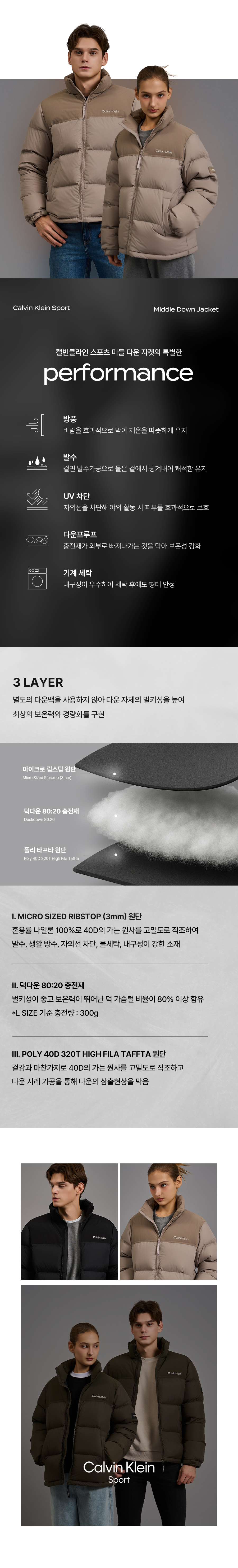 인기 캘빈클라인 스포츠 25FW 미들 다운 패딩 유니 3컬러 택1