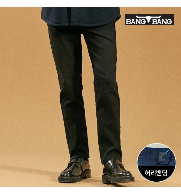 뱅뱅뱅뱅 남성 더블기모 레귤러핏 스판 데님 검정