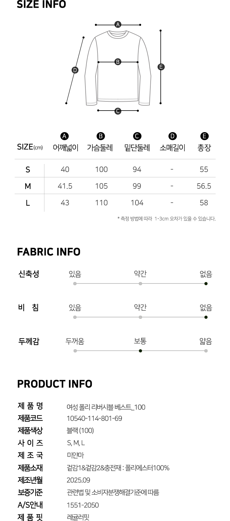 [행텐] 여성 폴리 리버시블 베스트_100(10540-114-801-69)