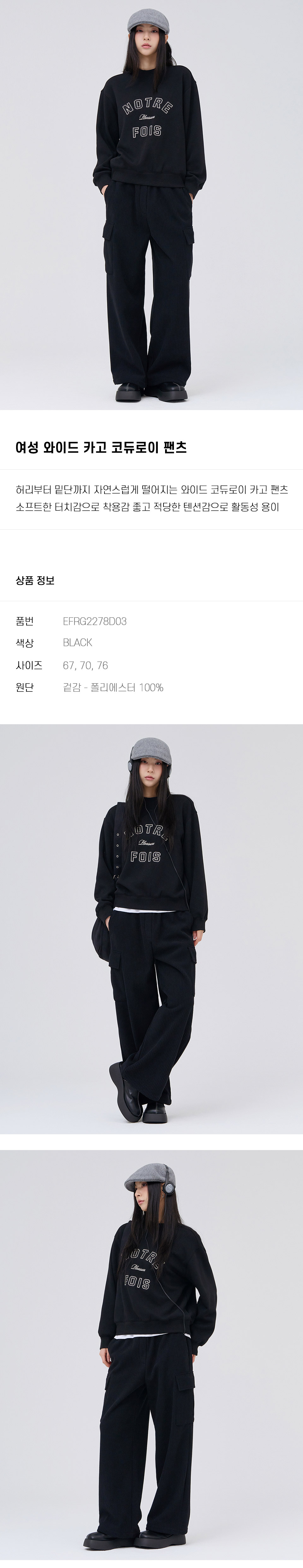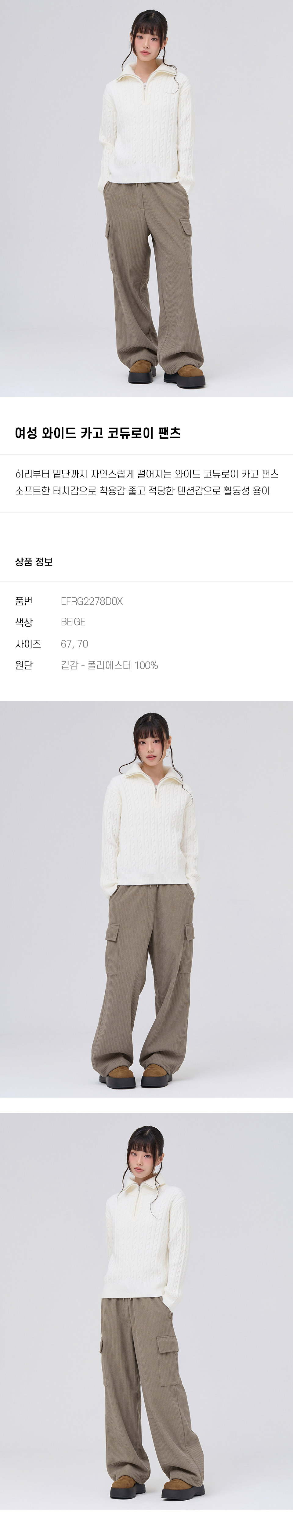 (현대Hmall)체이스컬트 (WOMAN) WIDE 카고 코듀로이 PANTS/2Color
