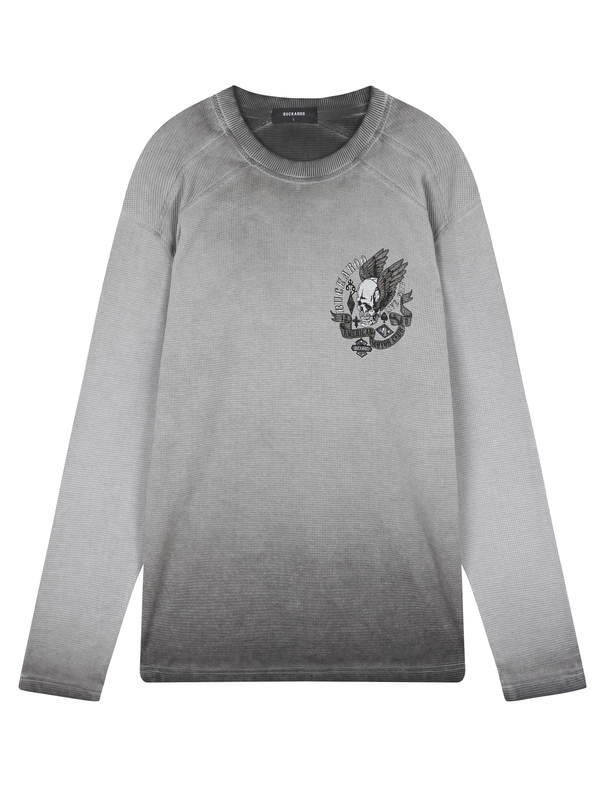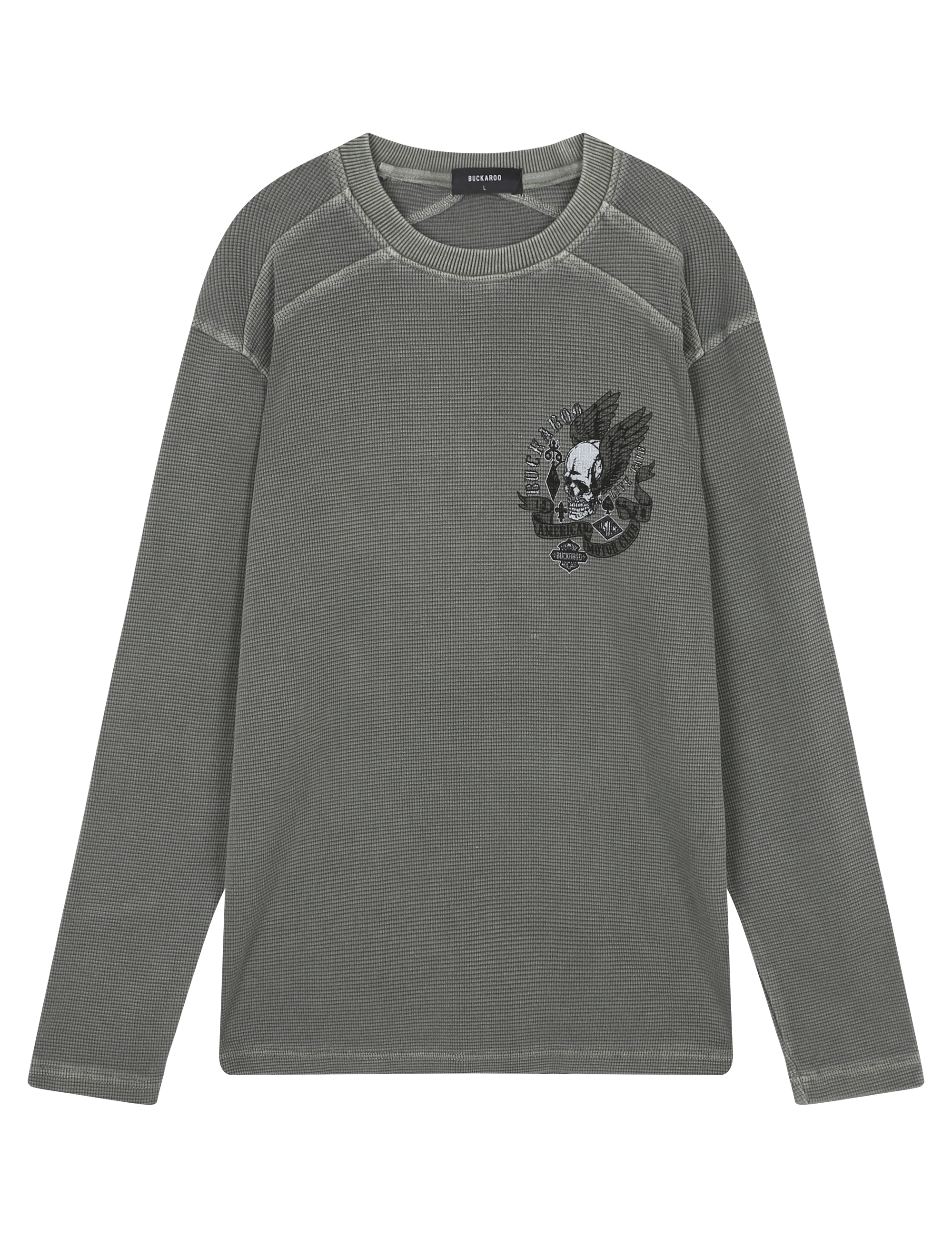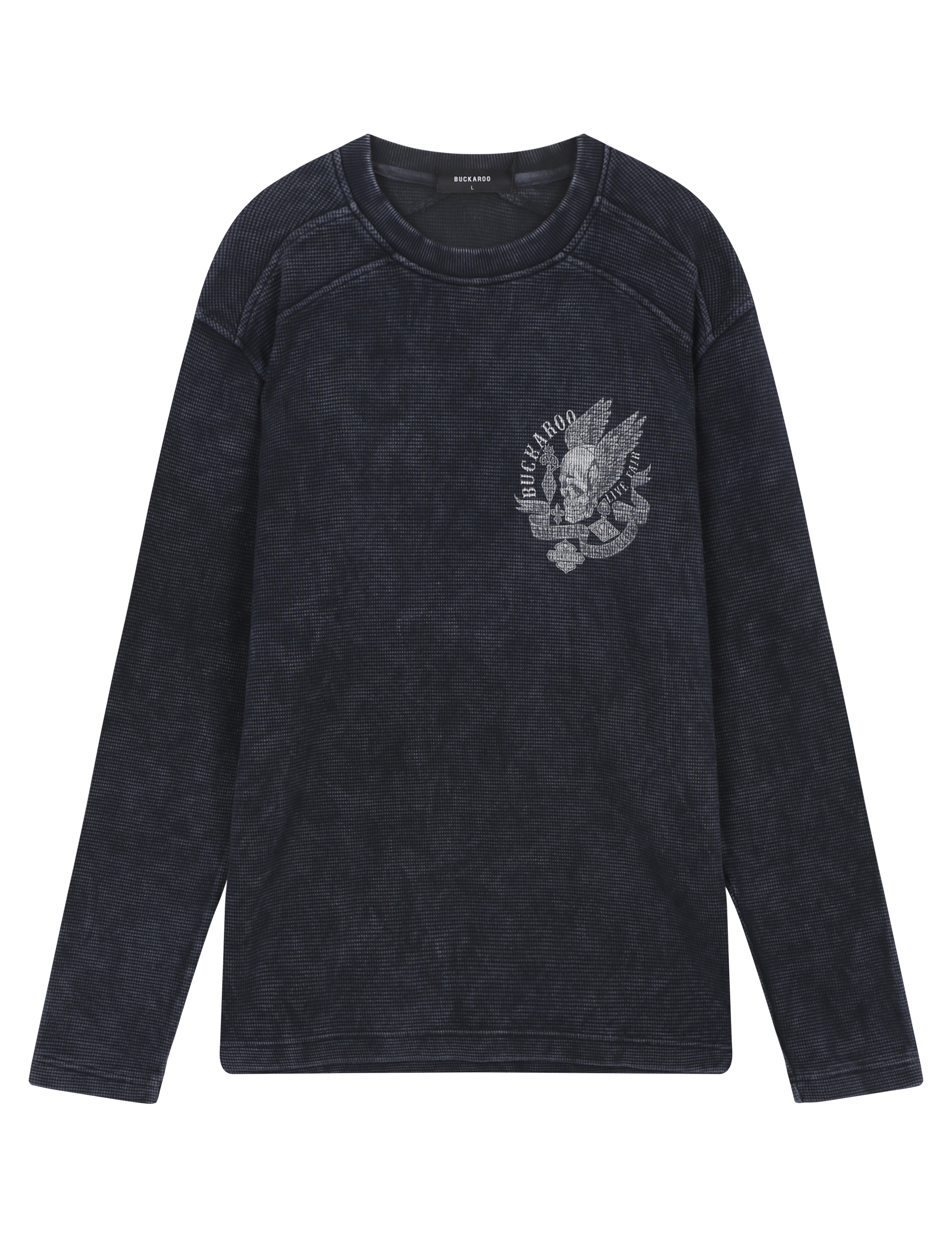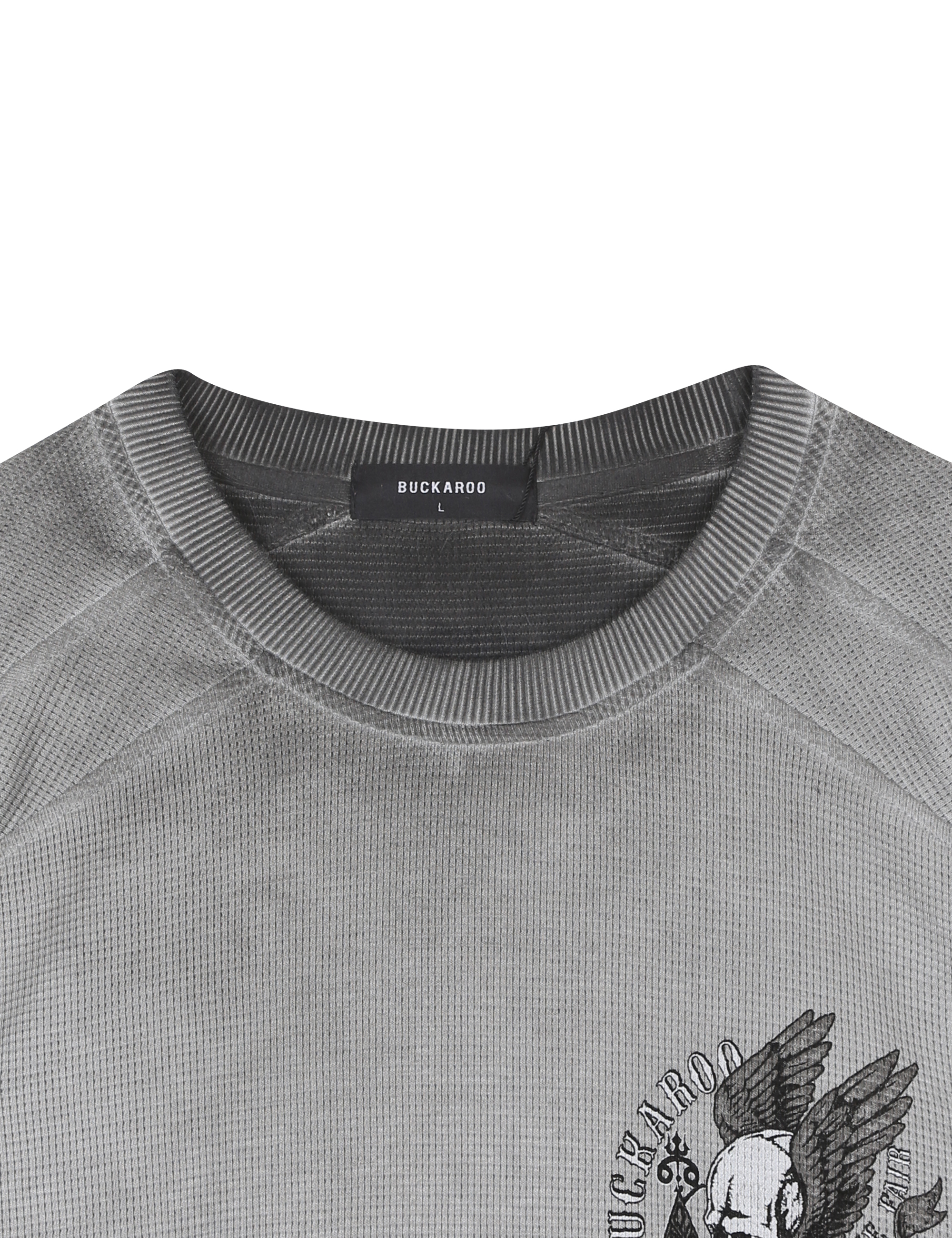 남성 와플 가슴프린트 가먼트다잉 R넥 TS(B223TS320P)