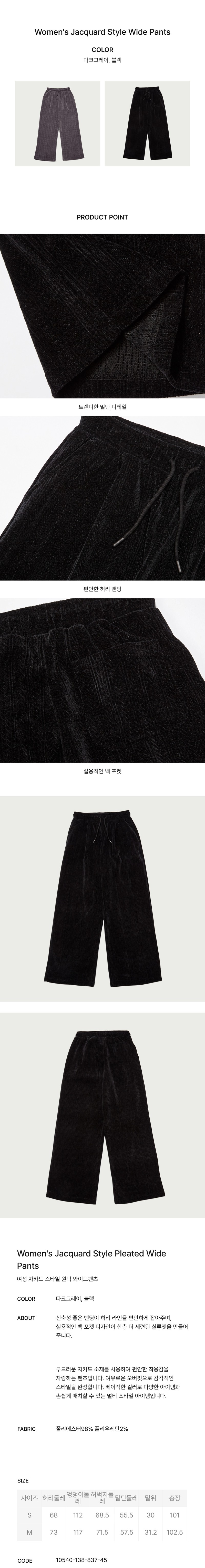 [행텐] 여성 자카드 스타일 원턱 와이드팬츠_100(10540-138-837-45)