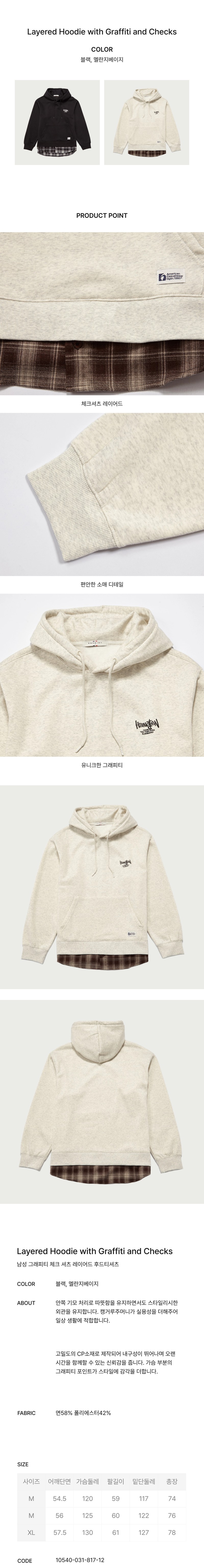 [행텐] 남성 그래피티 체크 셔츠 레이어드 후드티셔츠_101(10540-031-817-12)