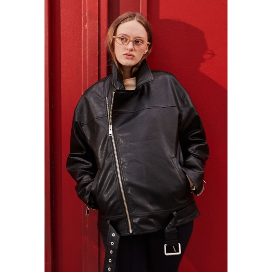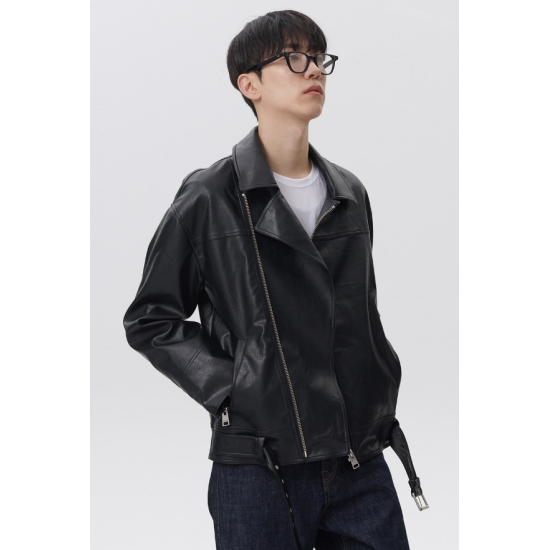 (롯데백화점)공용 더블 레이어 레더 자켓 블랙(PWTF3JKL42U)