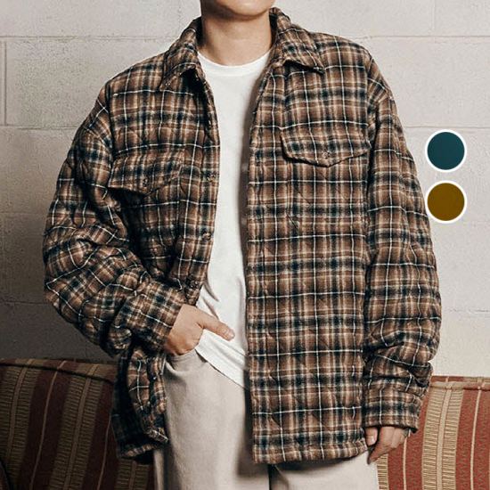 (롯데백화점)남성 퀼팅 패딩 루즈핏 체크 셔츠 자켓 B244SH350P