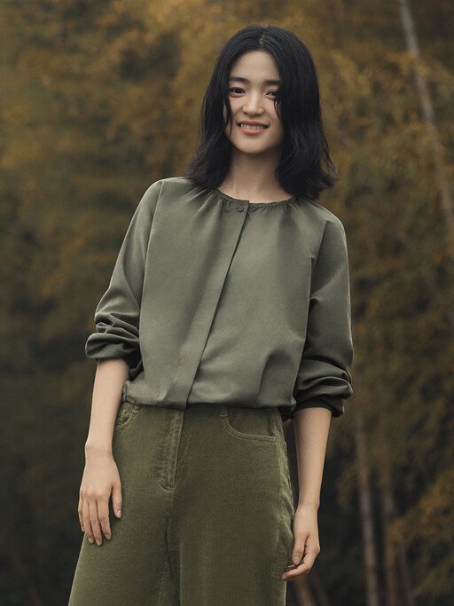 (신세계타임스퀘어점리빙관)여성) 스웨이드 개더 블라우스 PHF3WC2025