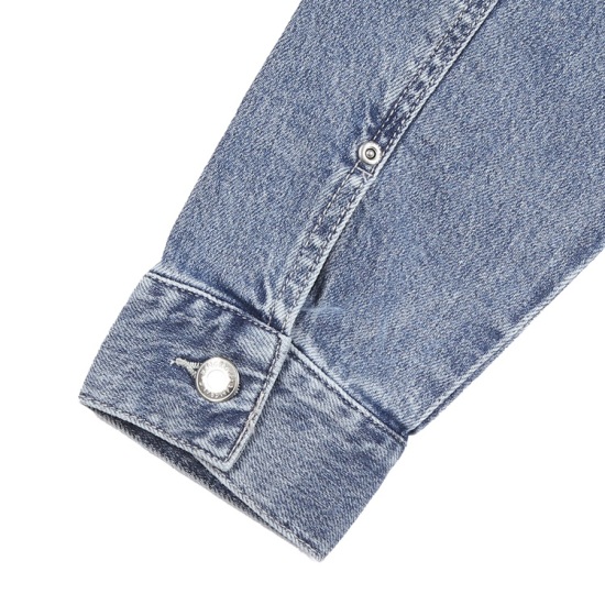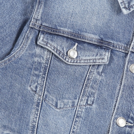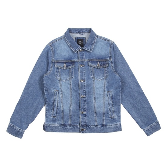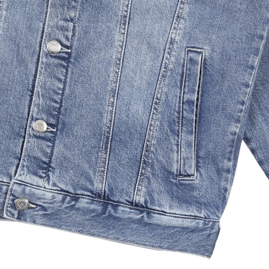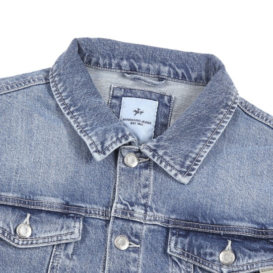 2025년 봄 신상품이며 베이직 스타일의 기본 청 데님 자켓이며 편하고 무난하며 워싱의 느낌이 아주 자연스러우며 활동성이 좋으며 연령대 상관없이 모두 착용 가능하며 착용자의 움직임에 따라 편안하게 착용 가능한 스타일의 데님 자켓