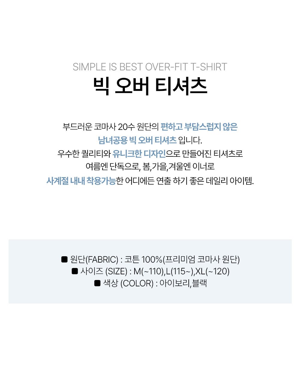 무지 루즈핏 빅사이즈 오버 박스 티셔츠 남녀공용 커플