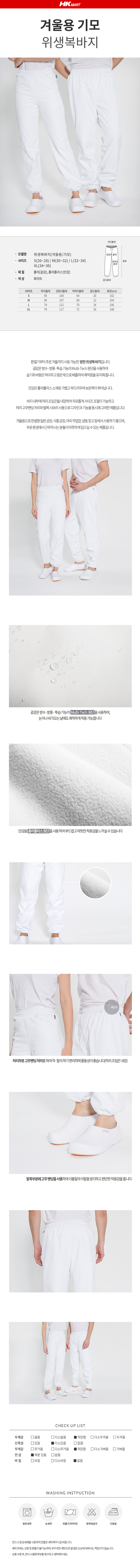 위생복바지(겨울용/기모형)고무줄타입/S/M/L/XL