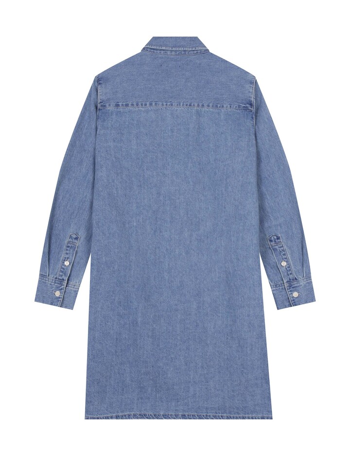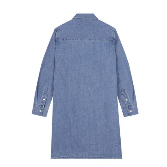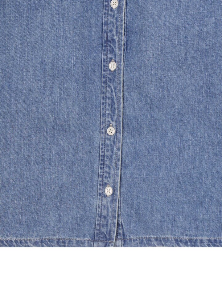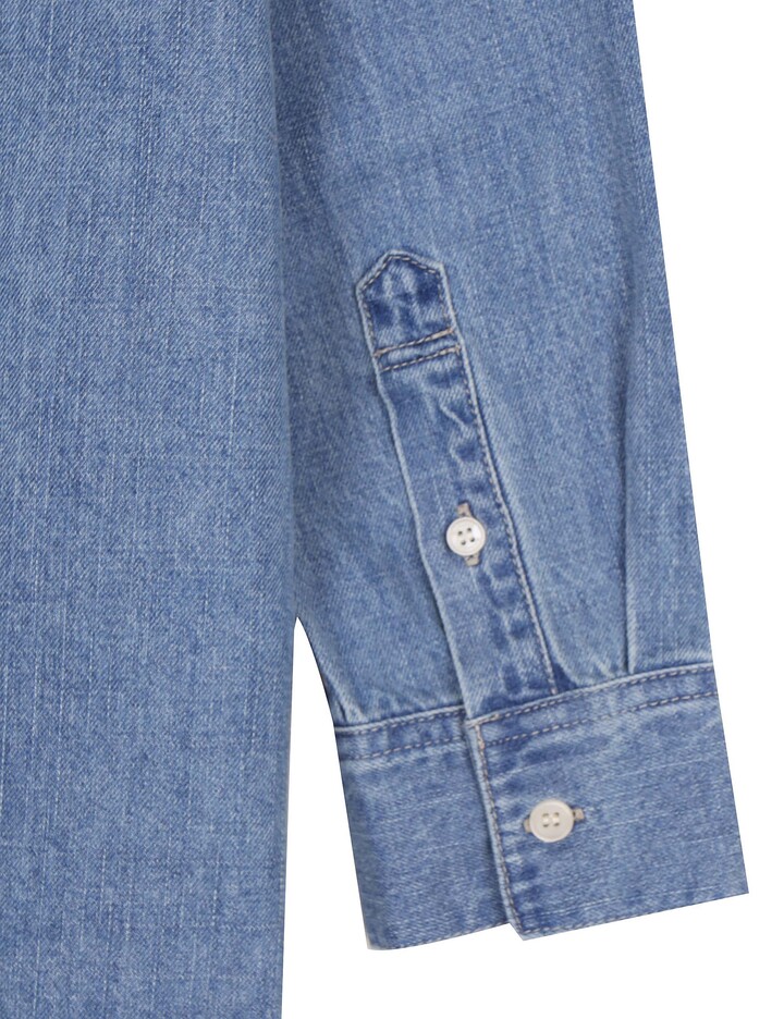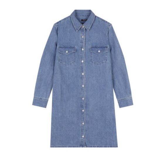 *무릎 살짝 위로 떨어지는 기장감과 여유있는 실루엣의 셔츠형 데님 원피스