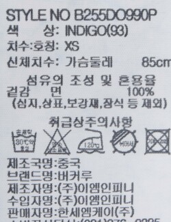 | - | 되도록 드라이 크리닝 하십시오. (데님, 언더웨어 상품은 물세탁시 중성세제를 사용, 표백성분 세제 사용금지), 손세탁시 뒤집어 세탁 하십시오. (데님 상품은 연한 색상과 함께 세탁할 경우 이염 될수 있음), 세탁시 탈색 될수 있으며 착장시 가방류나 밝은 색상의 의류에 이염 될 수 있으니 주의 하십시오. |