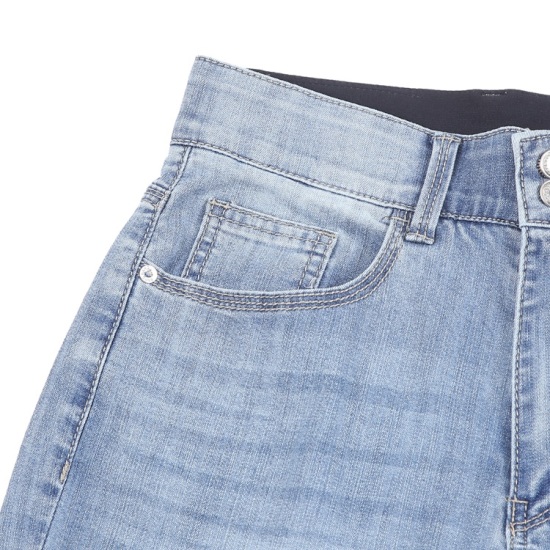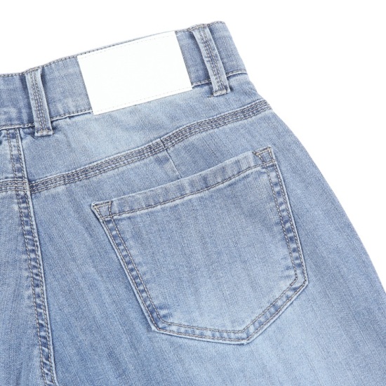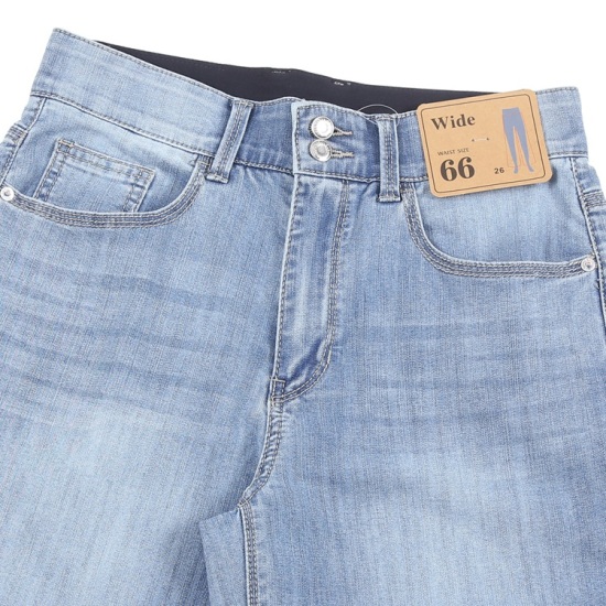 2025년 봄 신상품이며 때로는 여름에도 착용 가능한 스타일의 쿨   속밴드 와이드 스판 10부 청바지이며 빠른 속도로 수분을 흡수하고 건조하며 신체내 수분및 체온을