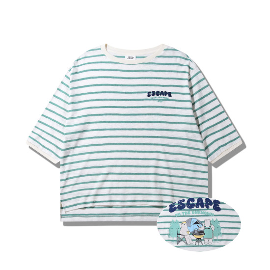 -소매단에 리브를 달아 완성도를 높여줌-지프만의 아트웍을 프린트와 자수로 포인트